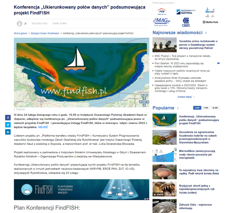 Artykuł "Konferencja „Ukierunkowany połów danych” podsumowująca projekt FindFISH" na stronie gospodarkamorska.pl i zielonagospodarka.pl
