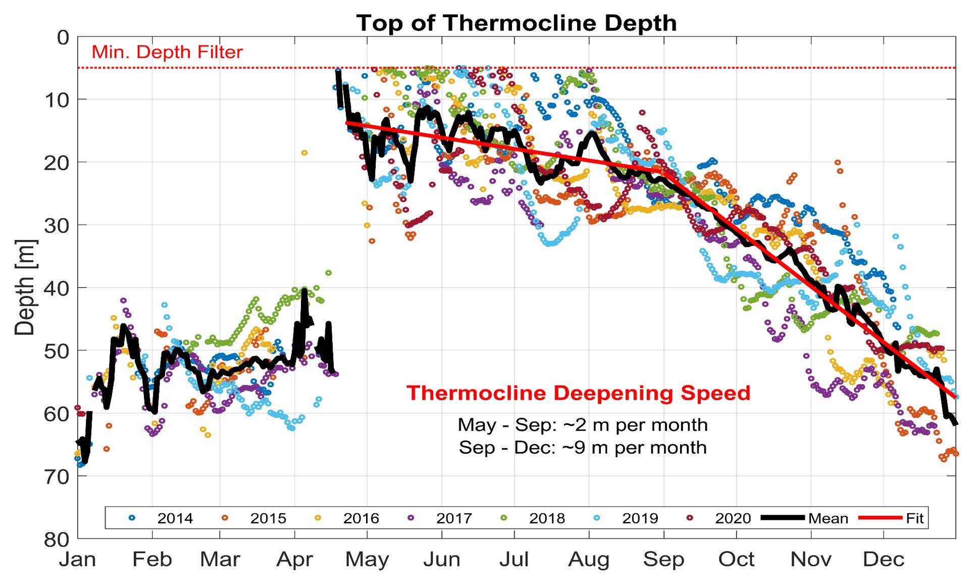 Maciej Janecki, Dawid Dybowski, Daniel Rak, and Lidia Dzierzbicka-Głowacka. 2022. A New Method for Thermocline and Halocline Depth Determination at Shallow Seas. Journal of Physical Oceanography, Published-online: 02 Jun 2022, https://doi.org/10.1175/JPO-D-22-0008.1
